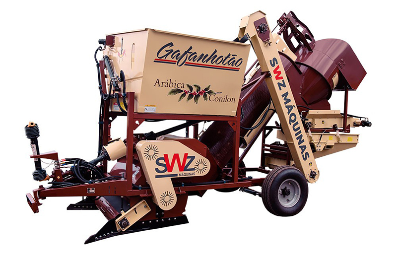 Tradicional expositora na 6ª ALTA CAFÉ – Feira de Negócios e Tecnologia da Alta Mogiana, feira que será realizada de 24 a 26 de março de 2026, no Clube de Campo da Franca, município de Restinga (SP), a SWZ Máquinas destaca o Recolhedor de Café Arábica Gafanhotão Reservatório. Projetado para efetuar o recolhimento de café de varrição em terrenos com inclinação de até 15°, o Gafanhotão Reservatório proporciona maior produtividade e agilidade ao recolher os grãos que ficaram nas ruas do cafezal, após colheita mecanizada.