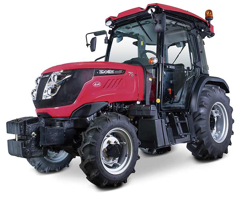 Trator Solis 75 N Estreito foi desenvolvido especialmente para culturas que necessitam de máquinas compactas e versáteis. Suas características, como largura, potência e conforto são ideais para trabalhos em culturas perenes e adensadas, como o cultivo de cafezais e pomares, além de contar com um EPC retrátil, ideal para operações com alturas limitadas, como parreiras e galpões.