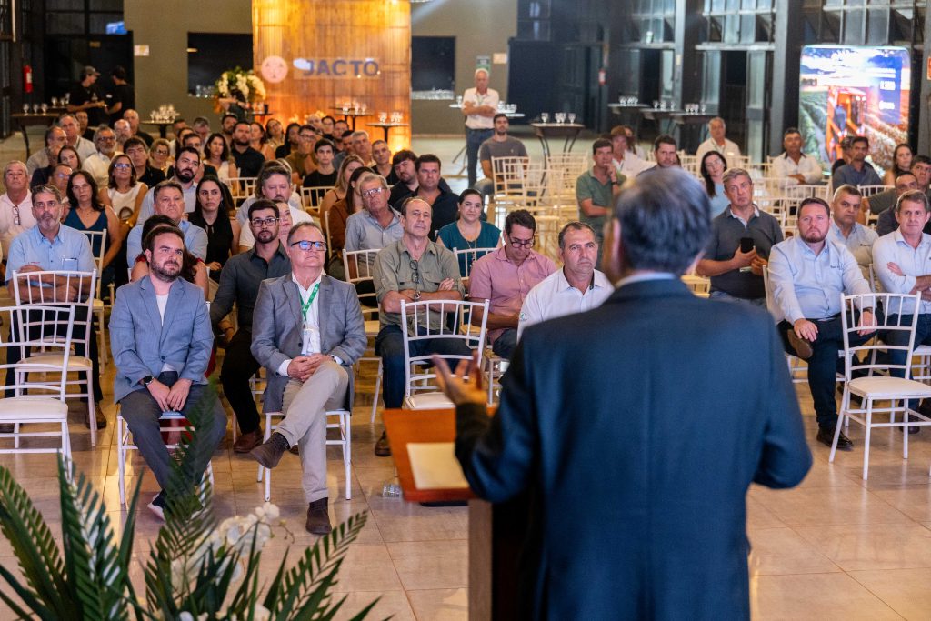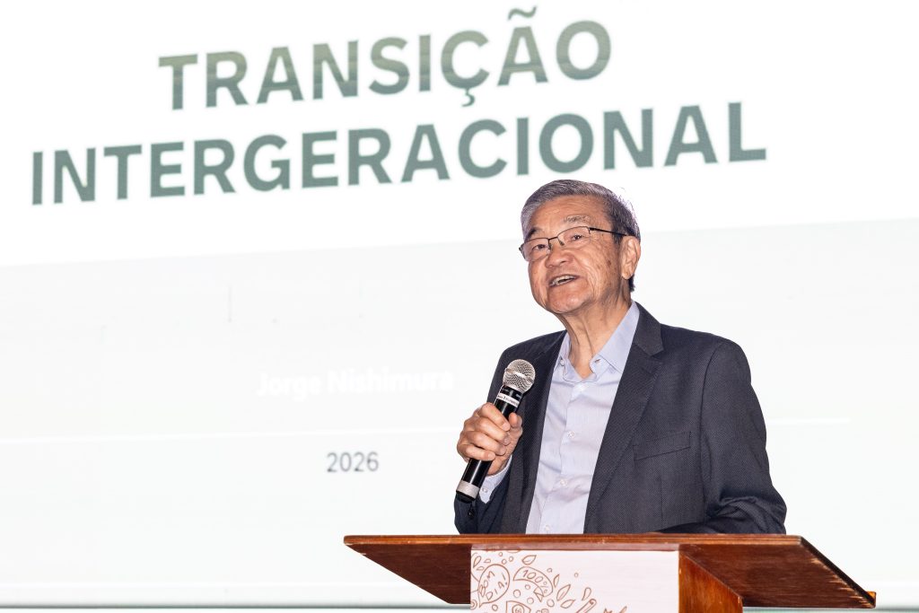 Durante sua apresentação, Nishimura compartilhou experiências pessoais e reflexões sobre o processo de transição da própria Jacto, empresa que nasceu em Pompéia (SP) no ano de 1978 e hoje conta com a terceira geração de gestores na liderança do Grupo.